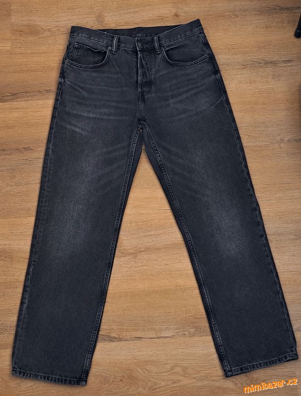 Pánské rifle Zara. Velikost uvedená 40. Odpovídá tak velikosti 30/32. Barva: tmavě šedá. Materiál: 100% bavlna. Klasický pas. Rovný střih. Širší nohavice. Zapínání na knoflíky. Kupované nové.