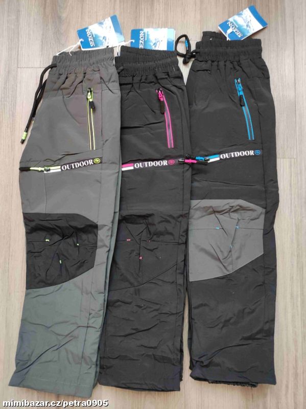 Zimní šusťákové nepromokavé zateplené kalhoty / oteplovačky / oteplováky