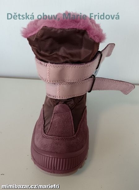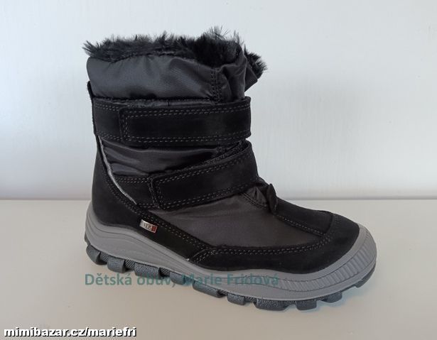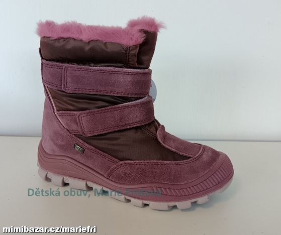Dětské zimní botičky s TEX membránou, která nepropouští vlhkost dovnitř a zároveň umožňuje odvětrávání dětské nožičky. Jsou vhodné do nepříznivého zimního počasí. Vyjímatelná vnitřní stélka. Uvnitř kožíšek. Zapínání na dva suché zipy. Jazyk všitý.