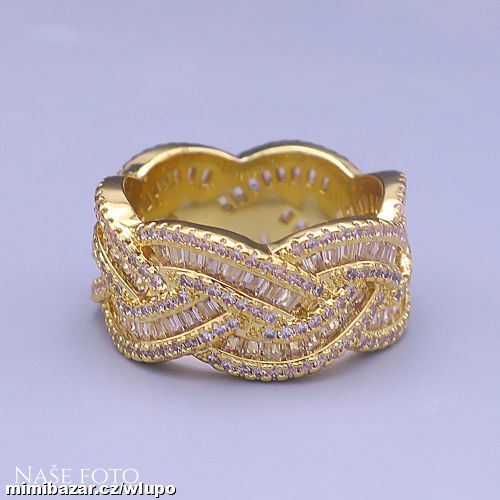 Luxusní prsten z pozlacené chirurgické oceli, který zaujme svým propleteným „braid“ designem posetým stovkami drobných čirých kamenů. Každý detail tohoto prstenu odráží precizní zpracování a zářivý styl. Ideální pro všechny, kteří milují výrazné šperky s noblesou a charakterem – dokonalá kombinace elegance a hip hop lesku.