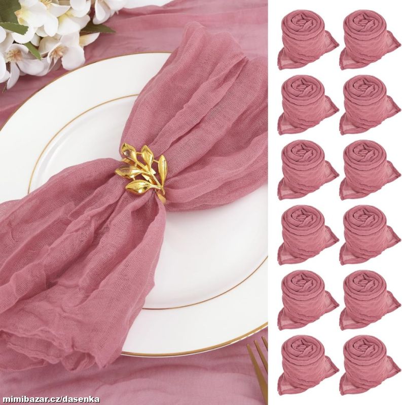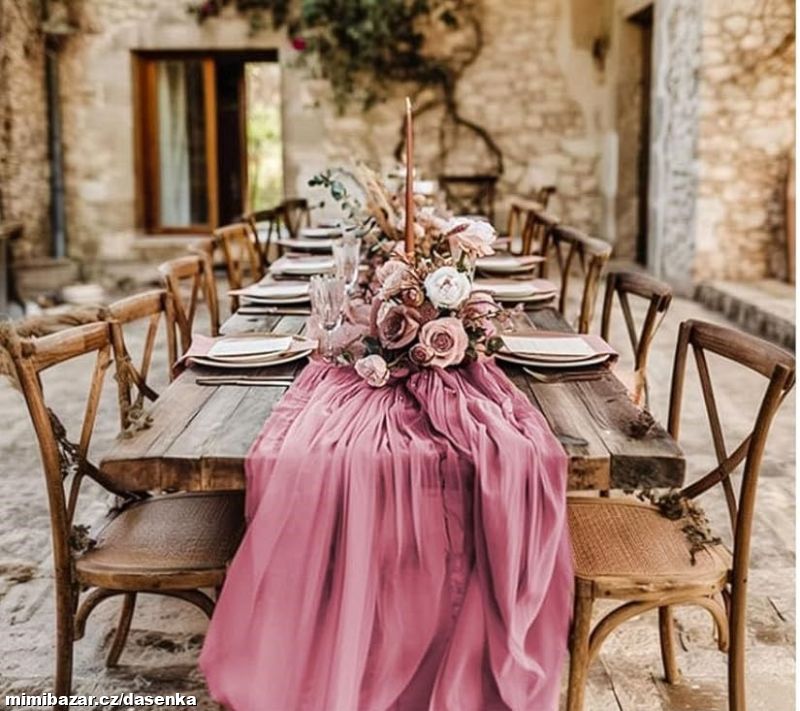 Boho běhoun z gázoviny na slavnostní stůl nebo slavobránu 90 x 300cm růžové barvy.