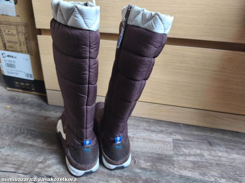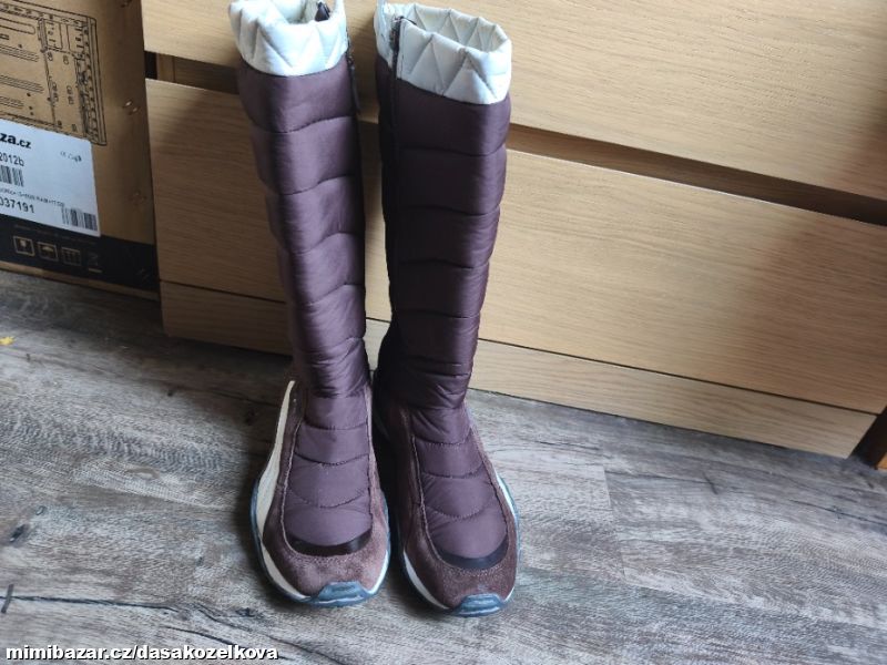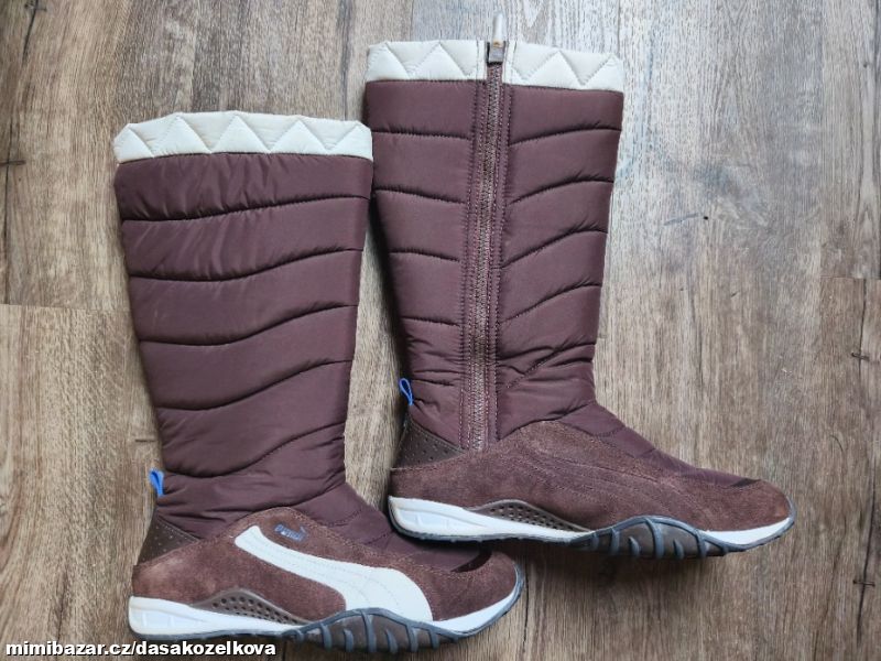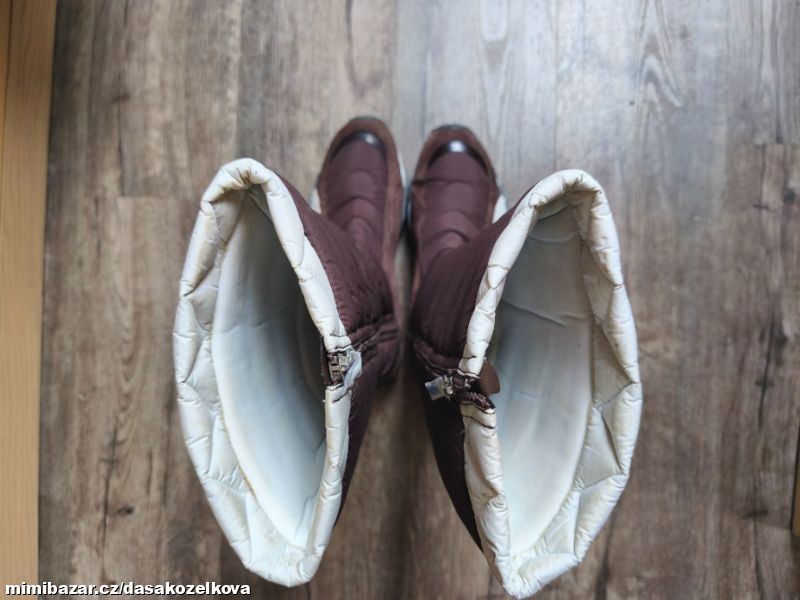 Málo nošené v super stavu, pouze trochu ušpiněné - vše viz. foto. Naměřená délka stélky 26,5cm, výška bot 38cm, horní obvod 42cm
