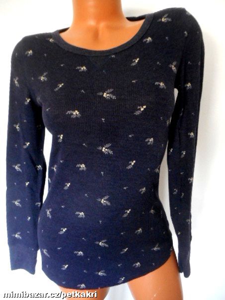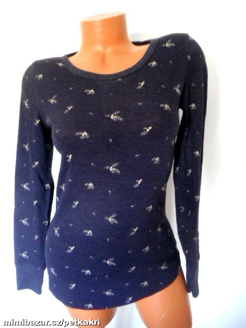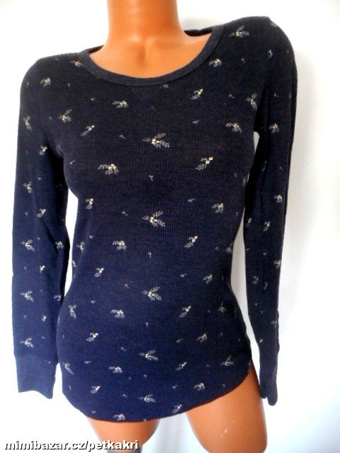 Modré květované žebrované tričko vel XS