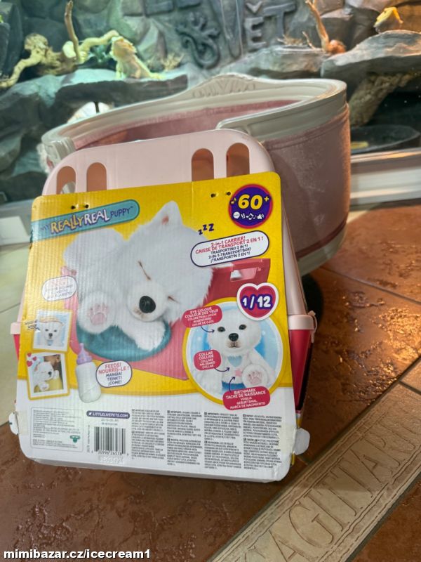 Pejsek se super měkkou umělou srstí, mrkajícíma očima a zatíženými tlapkami je My Really Real Puppy nejrealističtějším štěnětem, jaké jste kdy viděli. Štěně se dodává s luxusní přepravkou, takže si své nové štěně můžete vzít kamkoli s sebou. S více než 60 zvuky a reakcemi se toto štěně chová a zní přesně jako skutečné štěně. Štěně má 2 dotykové senzory – na hlavě a na zádech, takže si můžete pohladit jeho super měkkou umělou srst a sledovat, jak reaguje! Štěně má také hlad – přitiskněte mu láhev k tlamě, abyste ho nakrmili, a poslouchejte jeho roztomilé zvuky krmení. Přepravka 2 v 1: Přepravka pro štěně slouží zároveň jako pelíšek! Odepněte horní část přepravky a vytvořte pro své štěně útulný pelíšek na zdřímnutí. V podstatě nový.