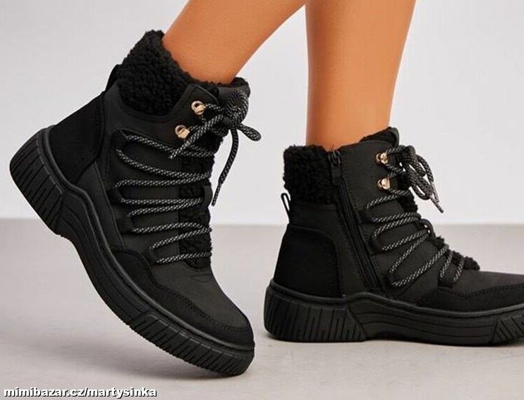 Dámské zimní kotníkové boty se šněrováním / nízké kozačky s ozdobným kožíškem.