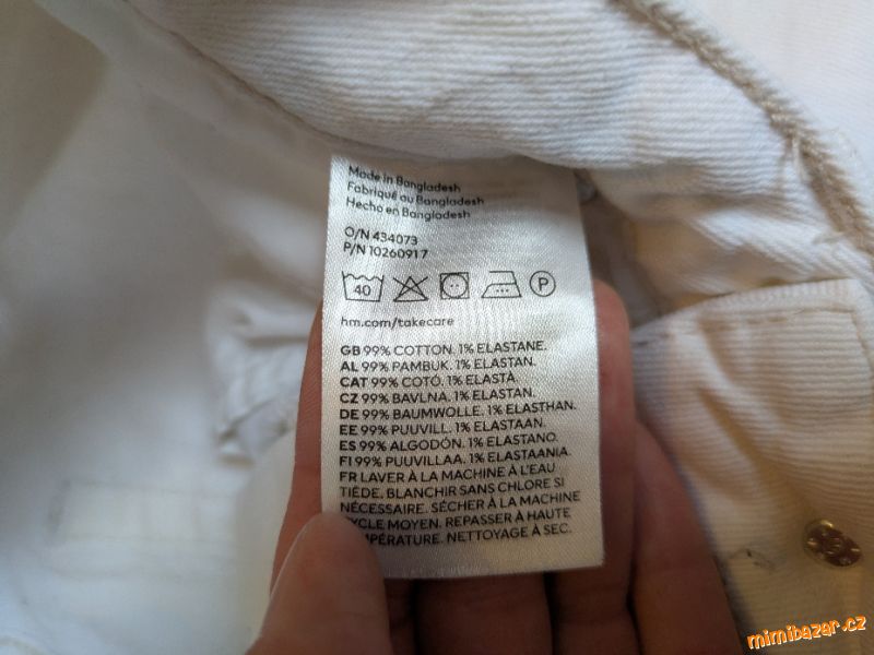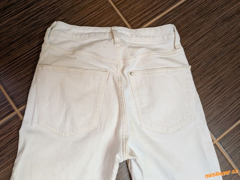 Ve výborném stavu, téměř nenošeny. Pružný materiál. 5 kapes, v pase na zip a knoflík.