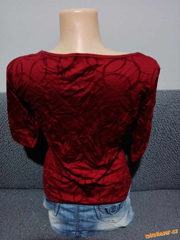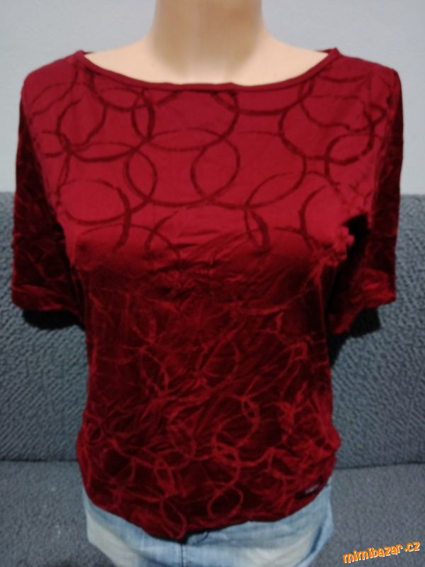 Prodám dámské elastické triko červené barvy s plastickým vzorem s kratším rukávem zn. Street One vel. 42