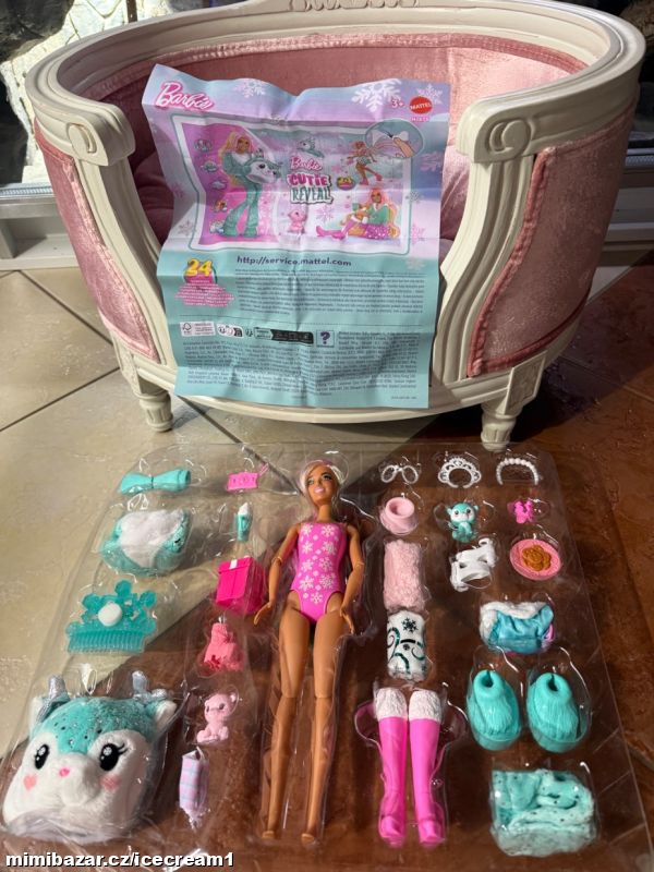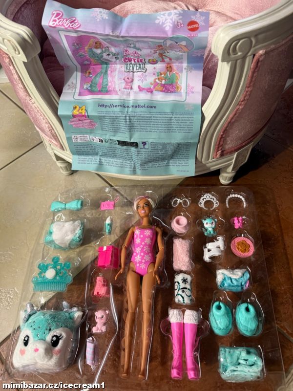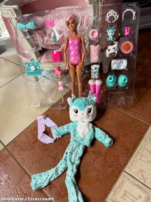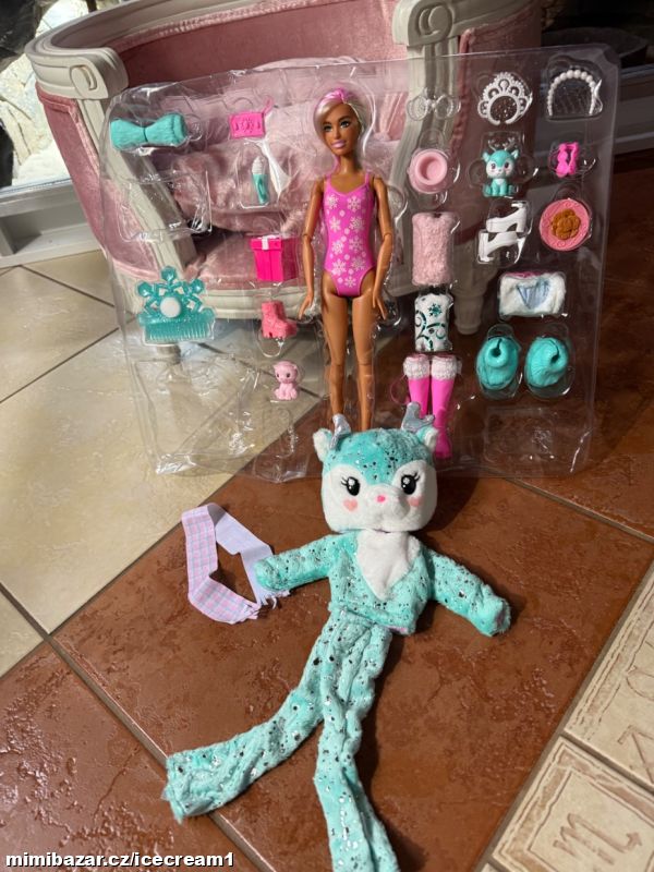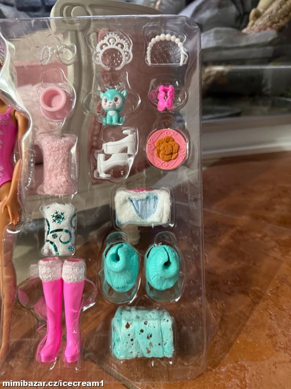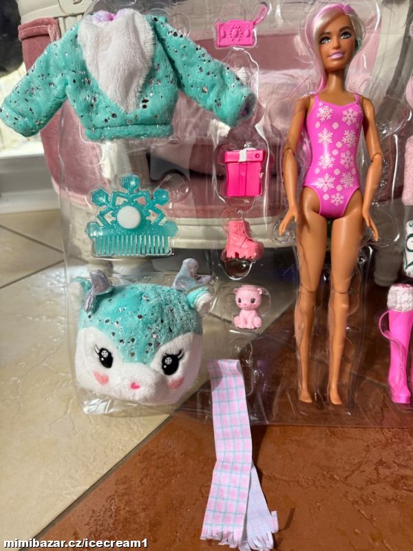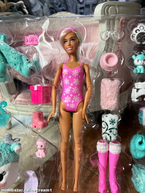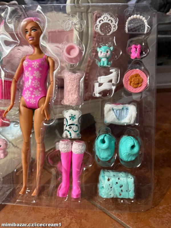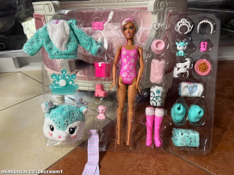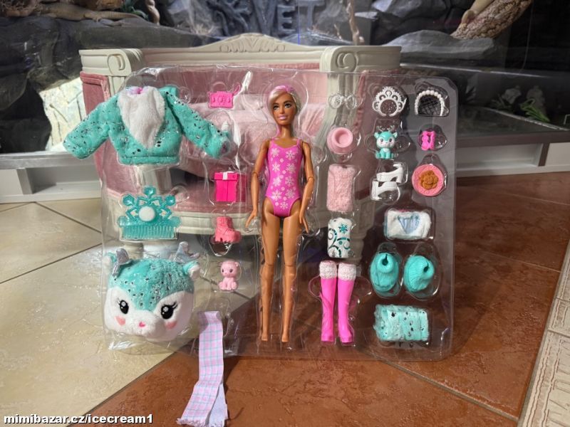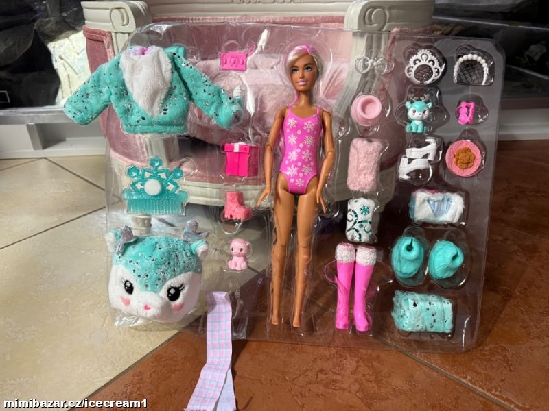 Nová panenka Barbie s mnoha doplňky. Reaguje na změnu teploty změnou barvy na obličeji a zvířátka také. Vše nové, nevybalené. Dodáno v plastovém blistru, přesně tak, jak je vidět na fotkách.