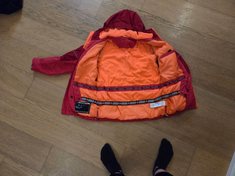 Krásná lyžařská bunda s PTX membránou 15 000 mm; sněhový pás, odvětrání v podpaží, kapsa na ruce na permici.