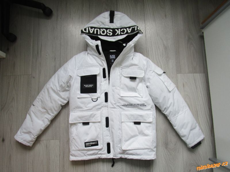 Prodám velmi teplou bundu, téměř nenošenou (syn měl 2x na sobě), bez cedulek, koupili jsme v obchodě New Yorker již malou. Bunda bílé barvy s černými detaily, opravdu velmi teplá. Koupena v pánském oddělení, ale mohla by být i pro dívky. Velikosti je pánské XS, jistě by mohla být i S, pro dívky/ženy odpovídá velikosti S/M, měřte prosím.