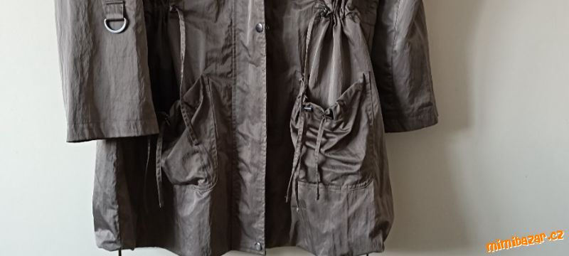 Odesílám do 24 hodin.Koupena v Německu. Délka zad 88 cm měřeno uprostřed zad, šíře pod rukávy 59, šíře v klidu tam co je stahovací šňůrka 55, stažením jde zmenšit. Rukáv od krku 74, jde srolovat a udělat 3/4. Tenká , bez podšívky. Materiál viz foto, je to pevnější šusťák, krásné kapsy. Při nákupu nad 700 Kč hradím doručení přes balíkovnu na výdejní místo.