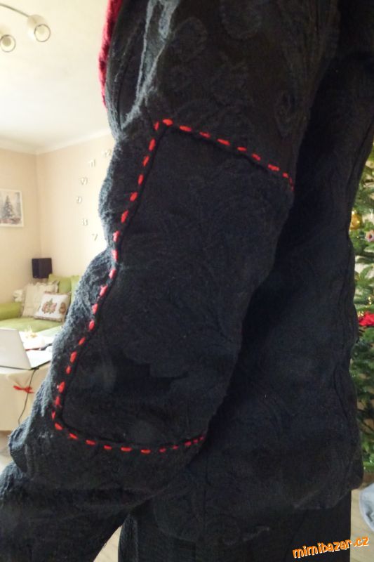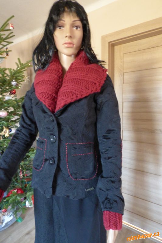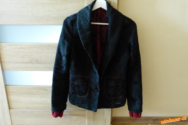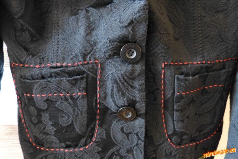 Prodám parádní dámské sako v bezvadném stavu,odepínací pletený límec,zapínání na 3 knoflíky,na předním díle 2 kapsy.