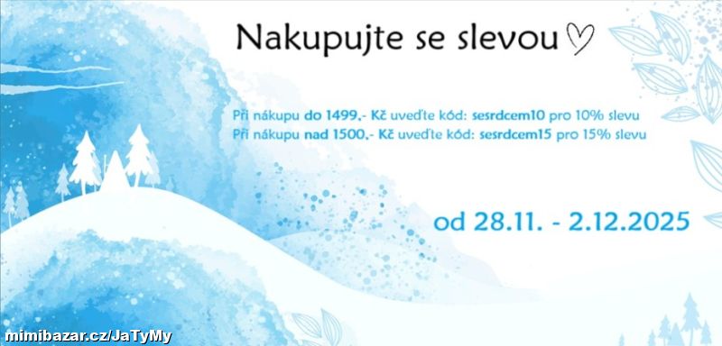 Milí, od 28.11. - 2.12. 2025 můžete nakupovat se slevou dle hodnoty Vaší objednávky