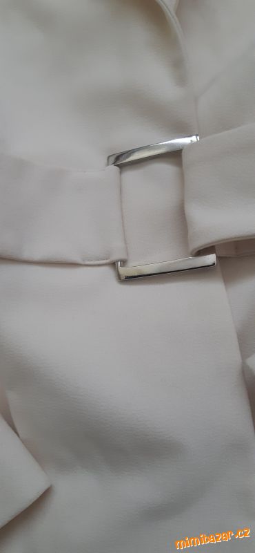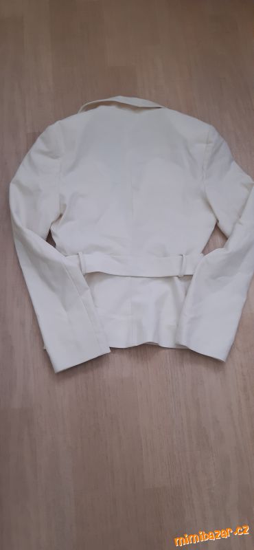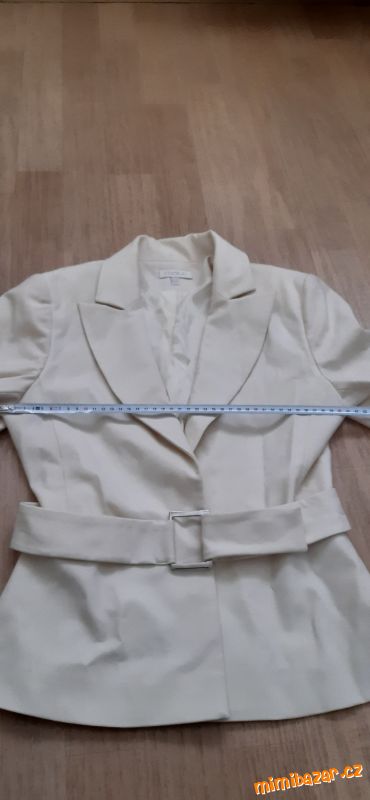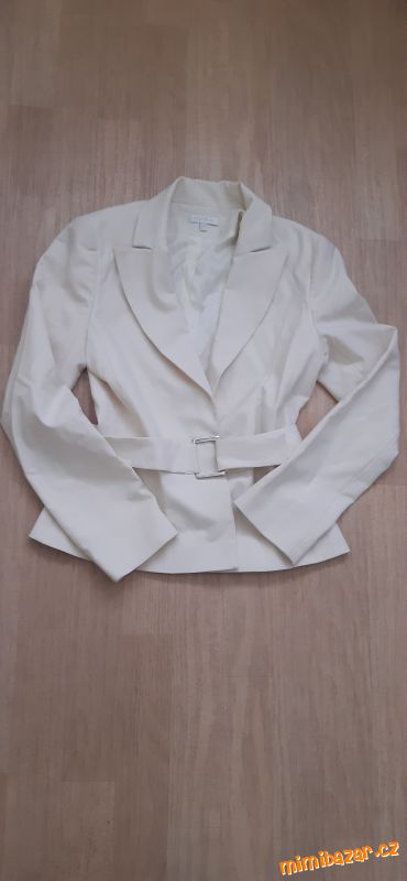 Krásné krémové sako značky Kookai. Nestárnoucí klasika, velmi nadčasový kousek. Sako nemá kapsy, má originální pásek se stříbrnou sponou. Jedná se o velmi originální kousek – nádherný k šatům i kalhotám. Velikost FR = 36 (uvádím i já tak 36, ale řiďte se, prosím, rozměry). Výrobce: francouzský butik Kookai. Sako nošené 2x. Pořizovací cena vysoká, nyní cena symbolická, čistka šatníku.