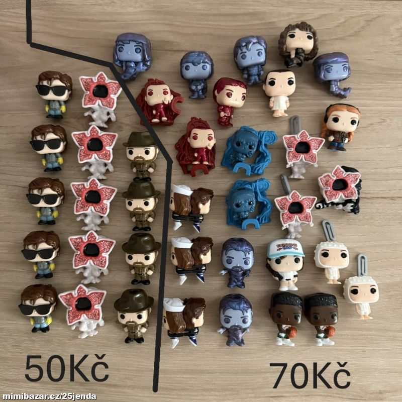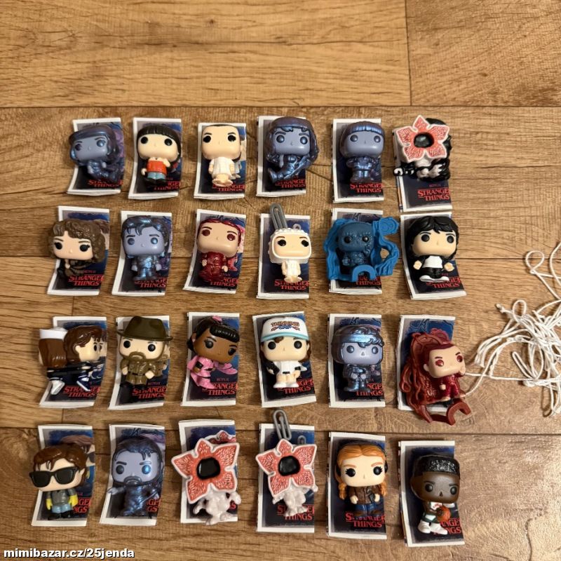 Prodám figurky z kinder joy Stranger Things cena: Steave, demogorgon, Hopper 50Kč/ks, ostatní 70Kč/ks. K některým jsou lístečky, k některým ne. Případně možná výměna - sháním Mikea a Upside down Willa s lístečky.
