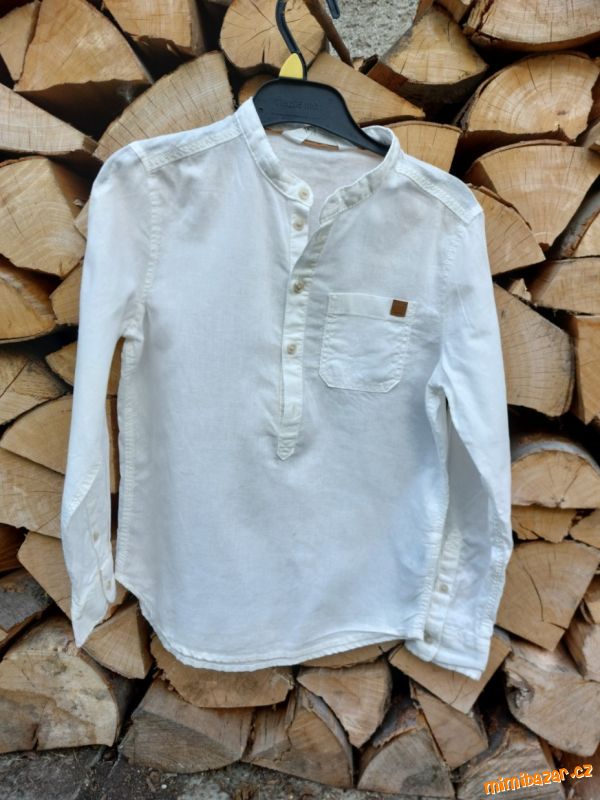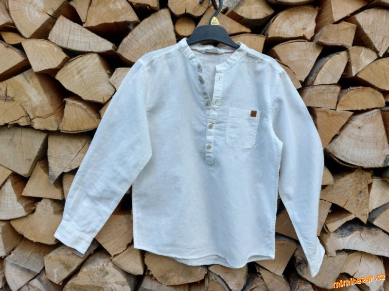 smetanová košile s dlouhými ohrnovacími rukávy, skvělá na léto - materiál 52 %len, 48% bavlna