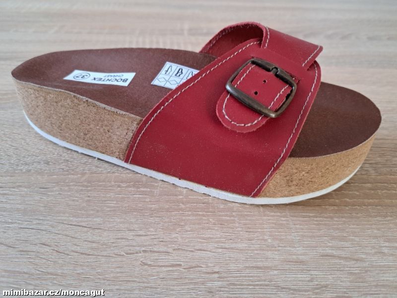 ZDRAVOTNÍ korkové pantofle na vysoké platformě, skladem v ČERVENÉ barvě, vnitřní stélka měkčená a tvarovaná na chodilo , jsou pohodlné.