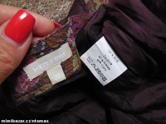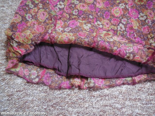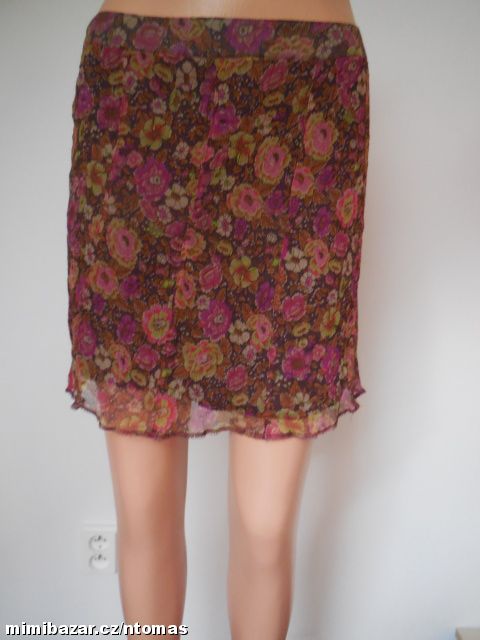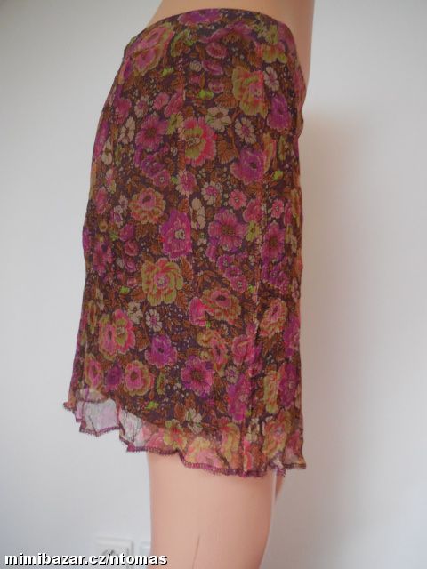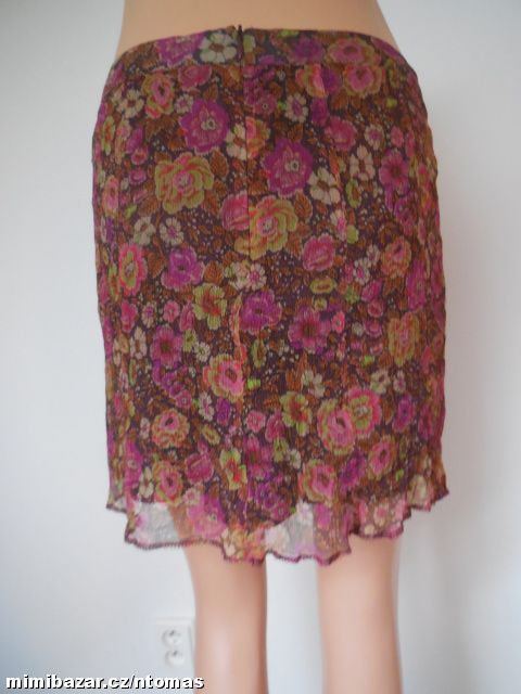 Moc pěkná, málo nošená, jako nová. s jemnou podšívkou. V zádech je zip. Velikost 38, délka: 42, š. dole: 47 - 60, boky: 44-48, pas: 39 - 41 cm. Mat. hedvábí, podšívka acetát, 40% cupro