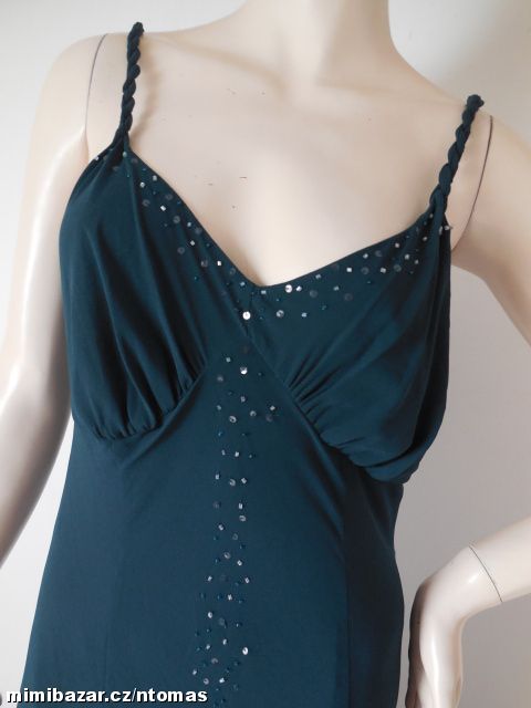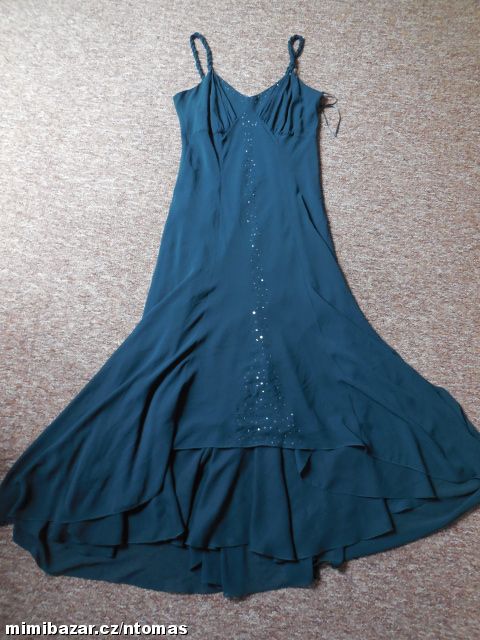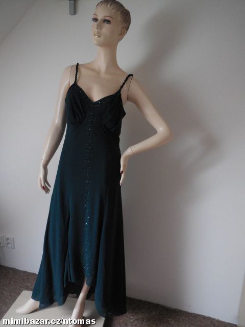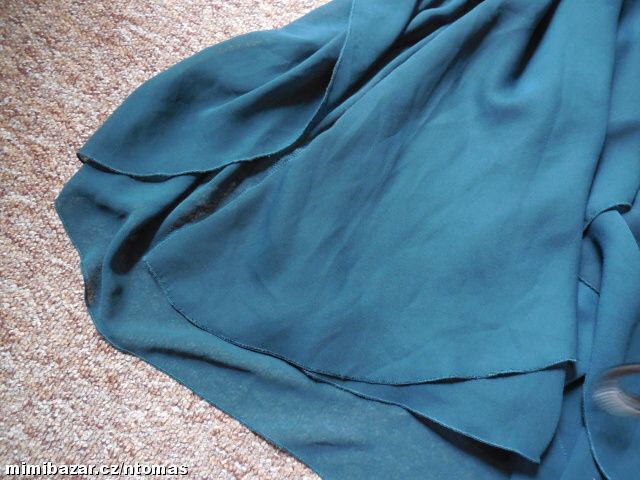 Moc pěkný kousek, málo nošené. Velice příjemné na pohled i omak. S jemnou podšívkou, splývavé. Vhodné klidně i na večer. Velikost 40, délka: 120, š. dole: 76 - 120, boky: 51 - 67, pas: 39 - 52, průramky, prsa: 43 - 51 cm. mat. polyester. Moc pěkné a …