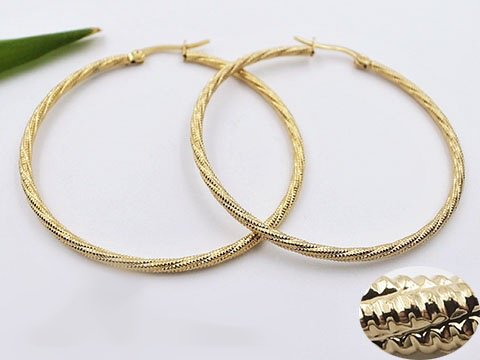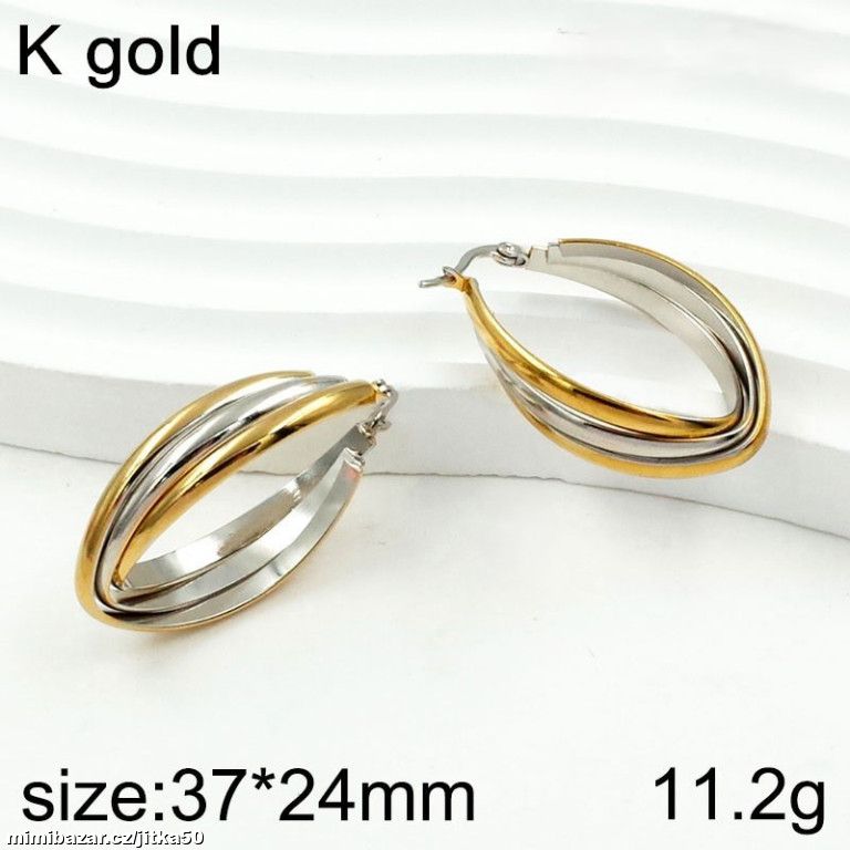 Nádherné kroucené náušnice kruhy ve zlatém provedení z chirurgické oceli. Průměr náušnice 4 cm. Krásný jemný šperk s vysokým leskem zlatého provedení