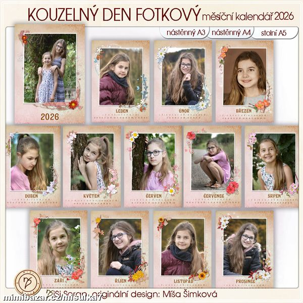 Provádím i vložení fotografií - hotový produkt vč. služby vložení Vašich fotografií hledejte v záložce "Kalendáře - měsíční 12+1strana"