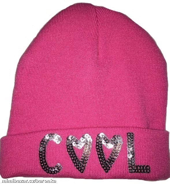 Světle růžová čepice, nápis LOVE, třpytivé flitry,