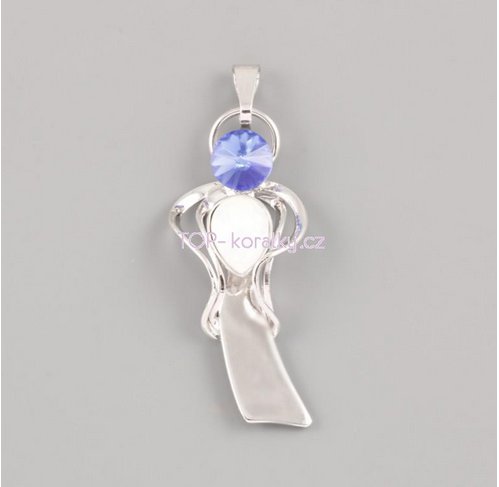 Přívěsek ANDĚL STRÁŽNÝ má křidélka z bílých kamínků Swarovki Elemetns, svatozář a lesklé hladké šaty.