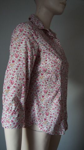 Moc pěkná, málo nošená, jako nová. Na pohled i omak dokonalá. Velice příjemné plátno. Propínací po celé délce. Velikost XS, délka: 57, š. dole: 44 - 45, pas: 40 - 41, průramky, prsa: 46 - 47, rukáv od krku / dole: 54 / 30 cm. Mat. bavlna - jemné plátno