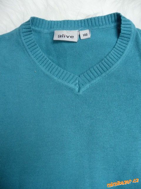 50% bavlna + 50% polyakryl. Svetřík je slabší, bezva i na léto. NOšený dcerkou, praný, pouze malinko chloupek. Jinak v pěkném nošeném stavu, bez poškození. Barvička odpovídá fotu. Velikost 140, ale nám vydržel i déle.....