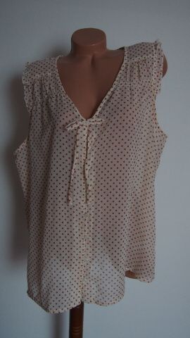 Moc pěkná, jako nová, dokonalá na pohled i omak. Z jemného plátna. Propínací po celé délce. S jemným, šedm proužkem. Velikost 52, délka: 67, š. dole: 57 - 70, průramky, prsa: 63 - 69, rukáv od krku / dole: 41 / 8 cm. Mat. polyester, 35% bavlna
