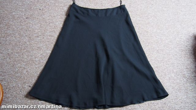 Moc pěkná, jako nová. Málo nošená. S jemnou podšívkou. V boku je zip. Velikost 48, délka: 84, š. dole: 107 - 110, boky: 70 - 79, pas: 50 - 52. Mat. polyester. Silnější materiál - vhodná i do chladných dní