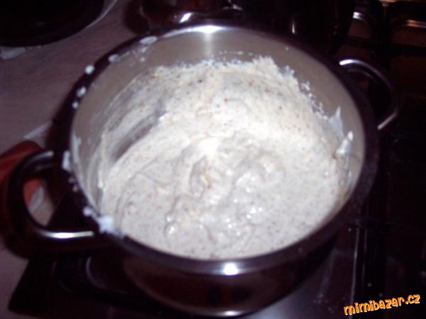 - Všechny suroviny KROMĚ másla a cukru moučka uvaříme na hustou kaši a necháme vychladit. V mixeru vyšleháme máslo s cukrem moučka a přidáme vychlazenou hmotu. Vznikne krém.