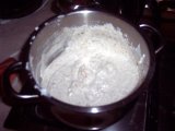 Takhle uvařená hmota na krém - ještě bez másla s cukrem