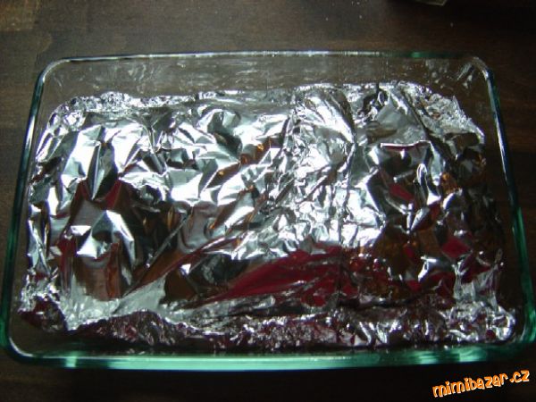 zabalíme, utěsníme, aby nám nevytekla šťáva a dáme péct do vyhřáté trouby na 1 - 1,5hod. podle velikosti do měkka